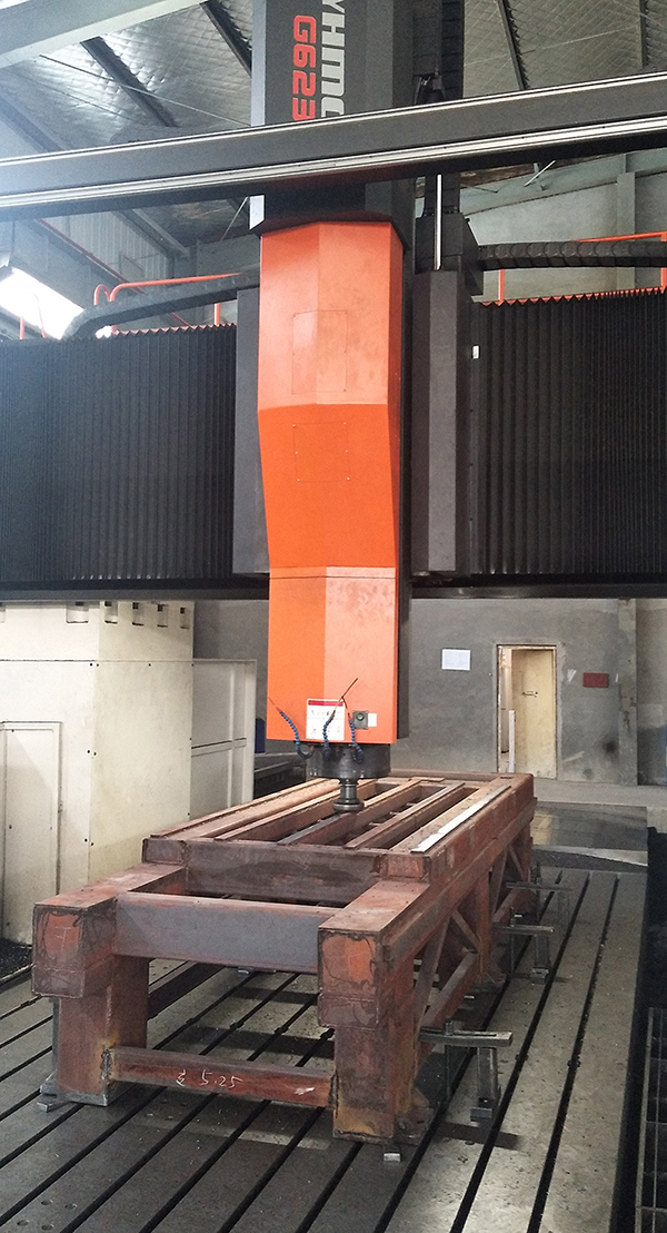 ◆橫梁采用厚壁10*200*300大方管,經(jīng)時效升溫580度自然降溫去應力,采用五面加工中心一次成型加工,保證導軌面齒條面,立柱安裝面的形位公差,然后用側銑頭打孔攻絲一次合成,從而保證裝配精度。