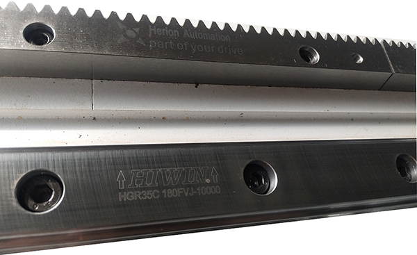 ◆Y軸采用臺灣上銀35mm直線導軌,德國亨利安2模研磨級C6精度斜齒條,壽命與質量得到國際認可。