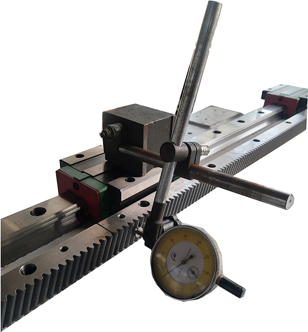 ◆齒條安裝時,均采用千分表檢測齒條面與導軌的平行度,每臺機床做好詳細精度檢驗記錄。